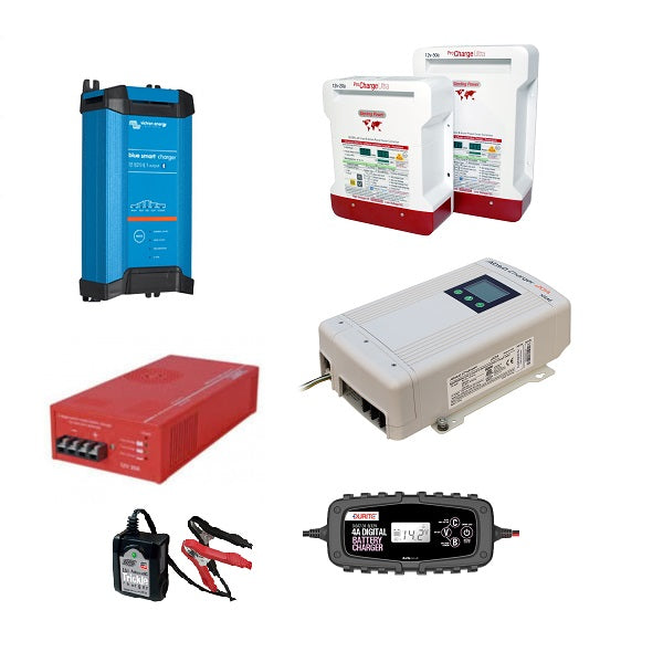 Our range of 240v mains battery chargers are suitable for charging a battery either at home or installed into a vehicle or boat to charge a battery or battery bank when connected to site or shore power. All of our battery chargers are fully automatic so they can be left connected to a battery without causing any damage. The size of the battery charger recommended for a standard lead acid, agm or gel battery is recommended to be approx. 10-20% of the battery or battery bank total amp hour (ah) capacity. For lithium batteries this can be up to the maximum charging rate for the lithium batteries built in or external battery management system (BMS).